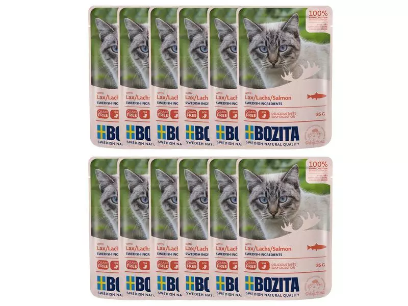 Bozita Nassfutter Pouch Häppchen in Sauce Lachs, 12 x 85 g