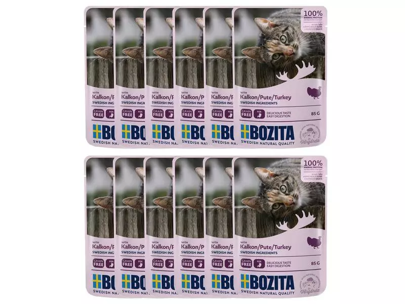 Bozita Nassfutter Pouch Häppchen in Sauce Pute, 12 x 85 g