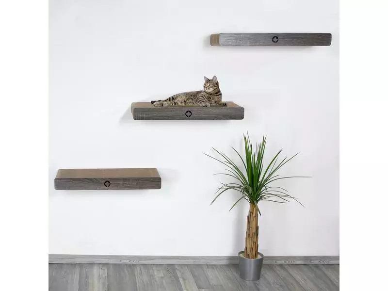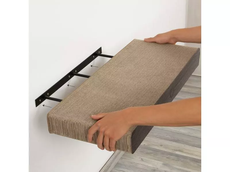 Das neue Kratzbrett mit Wandbefestigung ist da. Das Cloud lässt sich mit der herausnehmenbaren Wandhalterung an fast jeder Wand befestigen. Mit diesem Kratzbrett lässt sich zum Beispiel ein bestehender Kratzbaum um eine weitere Fläche erweitern, oder eine schöne neue Liegefläche für Ihren Vierbeiner in der Wunschhöhe kreieren. Somit kann Ihre Katze auch in einer majestätischen Höhe Gebrauch von dem CanadianCat Kratzkarton machen. Durch die verdeckten Beschläge wirkt das Kratzmöbel wie frei schwebend. Das Beste: sollte Ihre Katze mal zu übereifrig gewesen sein und das Kratzmöbel hierdurch zu stark in Mitleidenschaft gezogen worden sein, gibt es Ersatzkratzpappen, welche ohne eine neue Wandhalterung geliefert werden, sodass Sie diese ganz einfach austauschen können. Die Befestigungsart ist abhängig vom Wandmaterial. Bitte Schrauben und Dübel entsprechend der Wandbeschaffenheit verwenden.