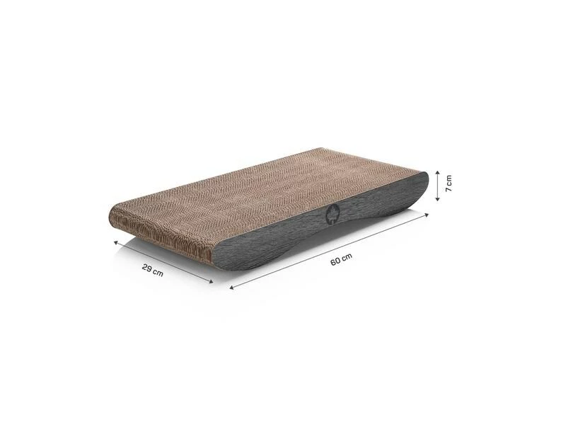 Die nächste Stufe in der Entwicklung von modernen Kratzbrettern ist der Comet. Er passt in jedes Wohnambiente, ist in zwei Grössen und zwei Farben erhältlich und verdient zu Recht die Bezeichnung Kratzmöbel. Eine ebene und eine geschwungene Seite laden zum Krallen, Kratzen, aber auch Dösen und Liegen ein. Katzen bevorzugen bzw. lieben Kartons aus Wellpappe und nehmen die Kratzbretter meist sofort in Beschlag. Die besonders feste Oberflächenstruktur nimmt auch grosse Belastungen ganz problemlos auf und bietet der Katze die ideale Möglichkeit zum Krallen und Kratzen, egal wie gross oder schwer die Katze ist.
