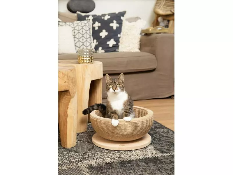 Der Designed by Lotte Zaina Kratzerkorb hat 2 Funktionen. Einerseits kann der Korb zum Kratzen verwendet werden. Der Korb ist mit Juteseil ausgekleidet, so dass viel Platz zum Kratzen vorhanden ist. Andererseits kann Zaina auch von Ihrer Katze als Korb benutzt werden. Nach dem Kratzen ist Zeit zum Schlafen und Ausruhen, alles am selben Ort!