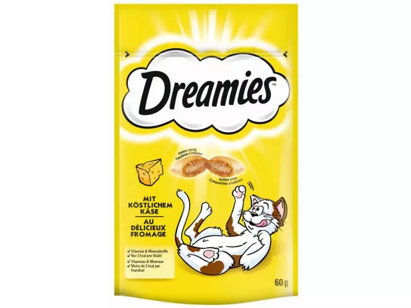 Der Dreamies Snack mit köstlichem Käse ist genau das Richtige, um Ihr Schmusekätzchen voll und ganz zu verwöhnen. Die kleinen Snacks für zwischendurch regen dabei gezielt die Sinne Ihres Katze an und verwöhnen so den empfindlichen Katzengaumen mit einem wahren Leckerbissen! Die praktische, wiederverschliessbare Verpackung hält dabei die Snacks lange frisch, so dass Sie Ihre Naschkatze jeden Tag aufs Neue reich beschenken können.