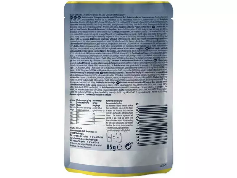 Artikelnummer: Happy Cat 1282208 Kategorien: Happy Cat, Katzen Nassfutter, Katzenfutter Schlagwörter: Adult (1-7 Jahre), Alleinfutter, Alleinfuttermittel für ausgewachsene Katzen, Geflügel, Happy Cat, Ohne Zuckerzusatz, Kastriert / Sterilisiert, Ohne künstliche Zusätze, Zum Hersteller