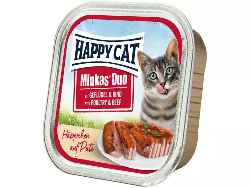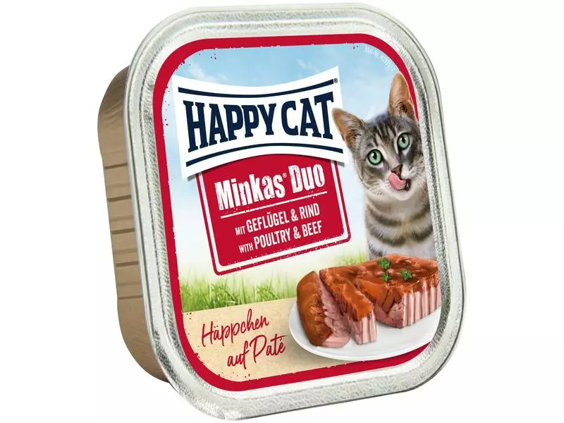 Happy Cat Nassfutter Minkas Duo Häppchen Geflügel & Rind, 12 x 100 g