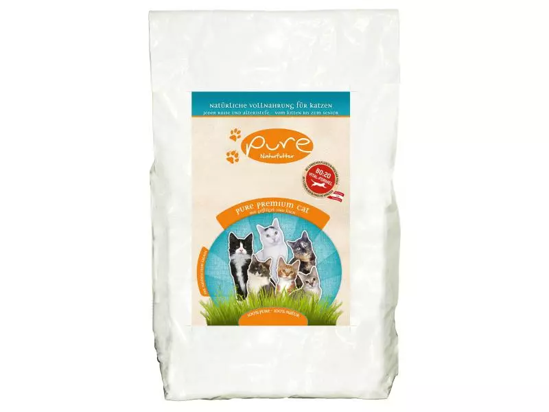 PURE Naturfutter ist hochwertiges und gesundes Tierfutter mit hohem Fleischanteil – ohne Chemie und ohne Tierversuche. Die Zusammensetzung des Futters ist das wichtigste Unterscheidungsmerkmal zu anderen am Markt erhältlichen Produkten: PURE Naturfutter enthält natürliche Zutaten, keine Aromastoffe und hat eine besonders hohe Nährstoffdichte. Deshalb reichen kleinere Futterportionen aus, gleichzeitig wird das Risiko von Übergewicht und daraus resultierende Gesundheitsschäden für Katze und Hund reduziert. Für PURE Naturfutter wird ausschließlich Frischfleisch in Lebensmittelqualität verwendet, schonend hergestellt und daher voller Vitamine und Mineralstoffe. PURE Naturfutter ist gesundes, natürliches Futter ohne Kompromisse – es enthält keine Konservierungs- oder Aromastoffe, keine chemischen Zusätze und kein Soja, kein Formfleisch und natürlich keine Tier- und Pflanzenmehle, es ist gentechnik- und tierversuchsfrei. PURE Naturfutter wird in einem schonenden und aufwendigen Kaltabfüll-Produktionsverfahren bzw. Schonbackverfahren hergestellt, sodass natürliche Vitamine und Inhaltsstoffe weitgehend erhalten bleiben.