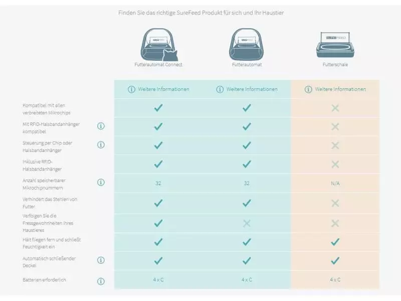 -größen voreingestellt werden können und Informationen zum Fressverhalten des Tieres in anschaulichen Abbildungen dokumentiert werden. Um die Sure Petcare App zu benutzen, muss der Futterautomat über den Hub (separat erhältlich) mit dem Router ans Internet gekoppelt werden.“