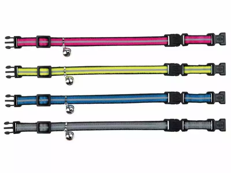 Mit diesem Halsband unterscheidet sich Ihre Katze von ihren herrenlosen Artgenossen. Mit dem Glöckchen versehen, bleibt die Jagd nach Vögeln ergebnislos. Das Halsband ist stufenlos verstellbar und mit zwei praktischen Schnappverschlüssen ausgestattet. Dadurch wird das Halsband sofort geöffnet, wenn Ihr vierbeiniger Liebling irgendwo damit hängenbleibt. Ihre Katze erhält nachts durch die reflektierenden Elemente zudem eine bessere Sichtbarkeit. Dieses Modell wurde in den Farben blau, rot, gelb und grau hergestellt und wird farblich assortiert geliefert.
