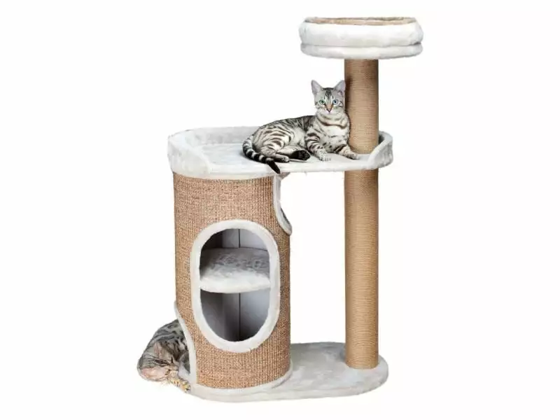 Der Kratzbaum Falco von Trixie bietet alles was das Katzenherz begehrt. Auf den gepolsterten Liegeplätzen mit Plüsch-Bezug behält Ihre Katze jederzeit den Überblick. Sie kann sich in die Höhle zurückziehen, wenn sie Ihre Ruhe möchte und sich gebührend von wilden Abenteuern erholen. Die Höhle ist aussen mit einer Sisalkratzfläche ausgestattet, an der sich Ihr Stubentiger ausgiebig die Krallen wetzen kann.