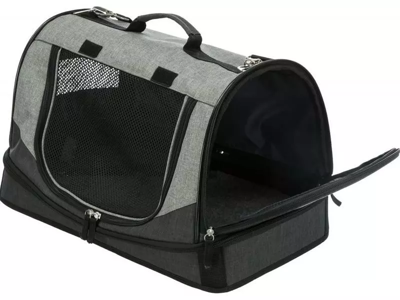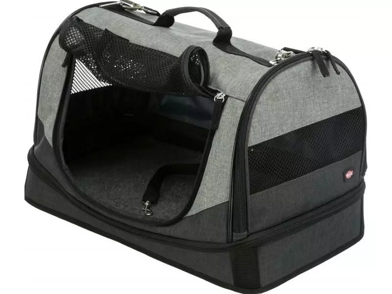 In der Tasche Holly können Sie Ihren Vierbeiner sicher und bequem transportieren. Ausgestattet mit einer herausnehmbaren, gepolsterten Bodenplatte in Lammfell-Optik und Netz-Einsätzen, die für optimale Luftzufuhr sorgen, gestaltet die Tasche den Transport für Ihren Hund besonders angenehm. Der abnehmbare, stufenlos verstellbare Schulterriemen lässt sich individuell auf Ihre Bedürfnisse einstellen. Eine integrierte Kurzleine verhindert das Herausspringen Ihres Hundes. Die Abdeckung ist durch den Reissverschluss komplett abnehmbar und kann so als Reisebett für Ihren Liebling dienen. In zwei seitlich angebrachten Taschen haben Sie Platz, einige Kleinigkeiten in greifbarer Nähe aufzubewahren.